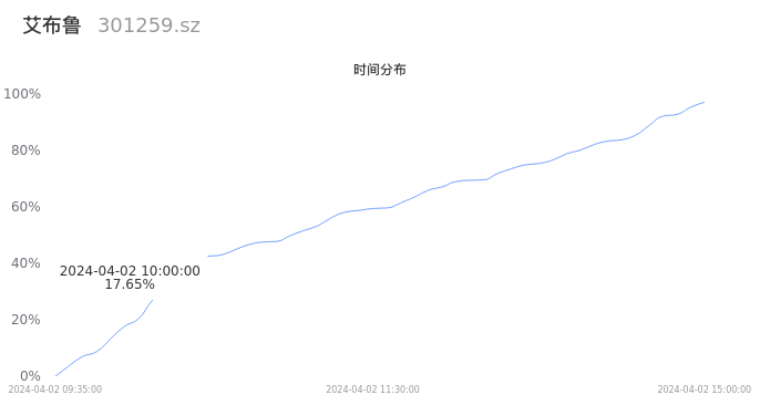 根据成交分布分析,该股票当天放量成交,成交清淡。时间上看,早盘前半小时成交量占据当天总成交量的17.65%;价格上看,成交呈现中间峰。成交分布分析主要研究股票成交的分布特性,不具有预测功能,请知悉。