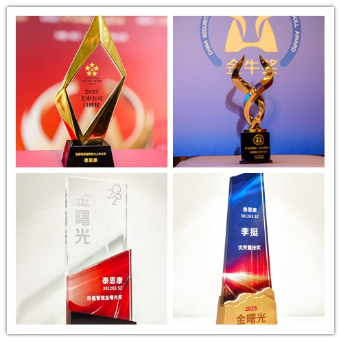 泰恩康董事、副总经理兼董事会秘书李挺凭借在信息披露、公司治理、投资者关系管理、市值管理等领域的专业表现,接连斩获新财富杂志“最佳董秘奖”、《证券市场周刊》“金曙光优秀董秘奖”、上海证券报“精锐董秘奖”、证券时报·e公司“中国上市公司投资者关系管理杰出董秘奖”等四项权威大奖。个人殊荣的背后,是董办团队专业素养与履职能力的集中体现,也折射出泰恩康在资本市场的良好品牌形象。