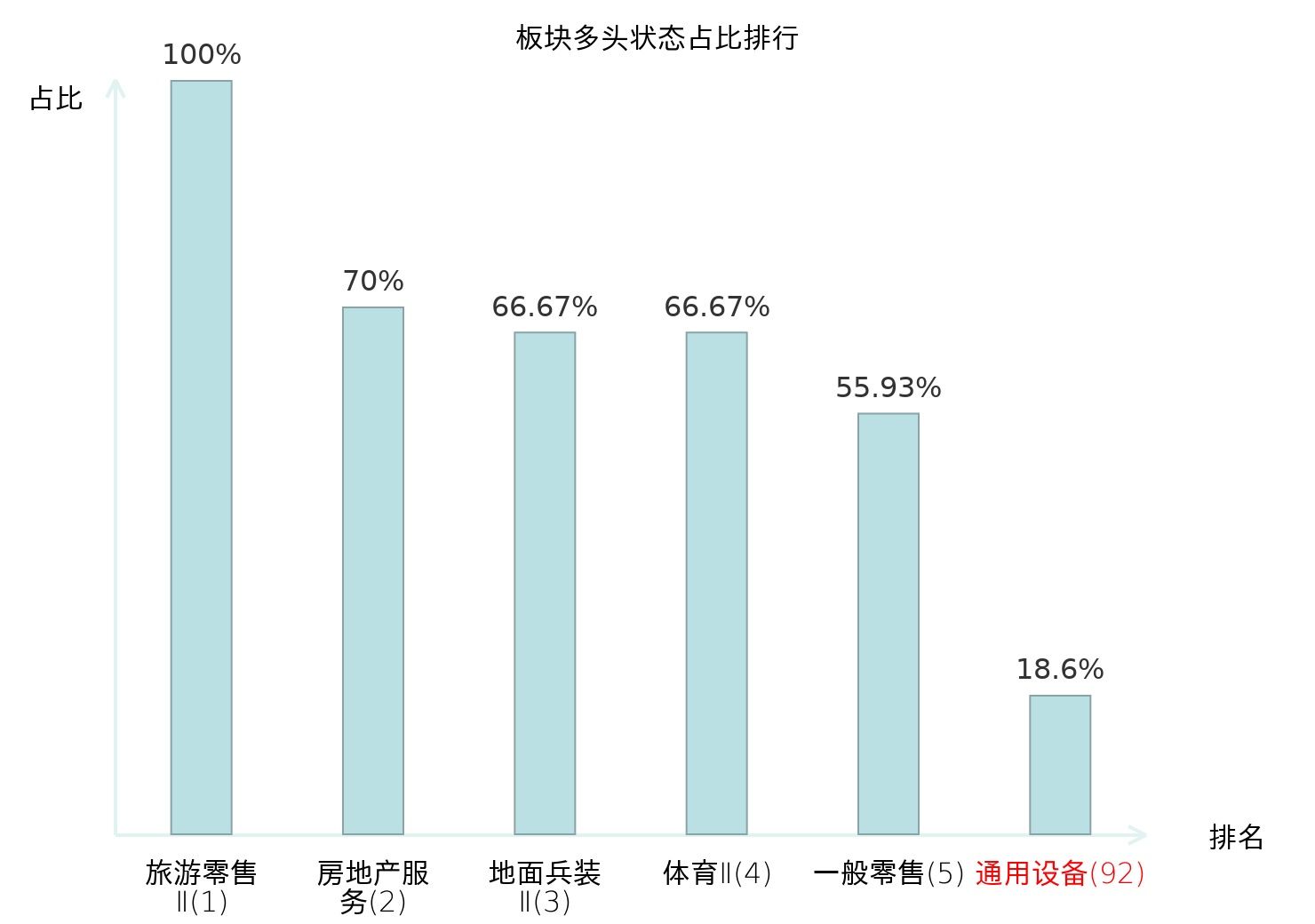全市场所有行业板块中主力多头状态占比排名中,旅游零售Ⅱ板块位居第一。林业Ⅱ板块名次提升最快,较昨日上升68位。