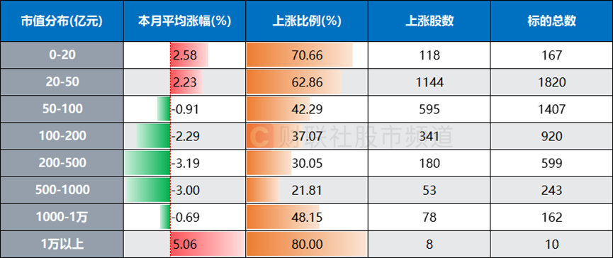 微盘月内持续领跑,上涨比例超过六成
