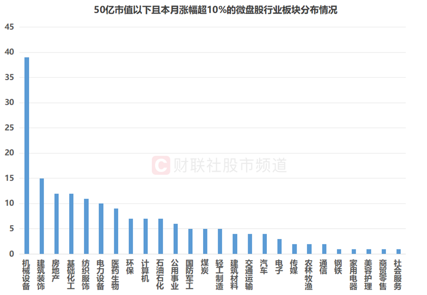 注:50亿市值以下且本月涨幅超10%的微盘股行业板块分布情况(截至10月22日收盘)