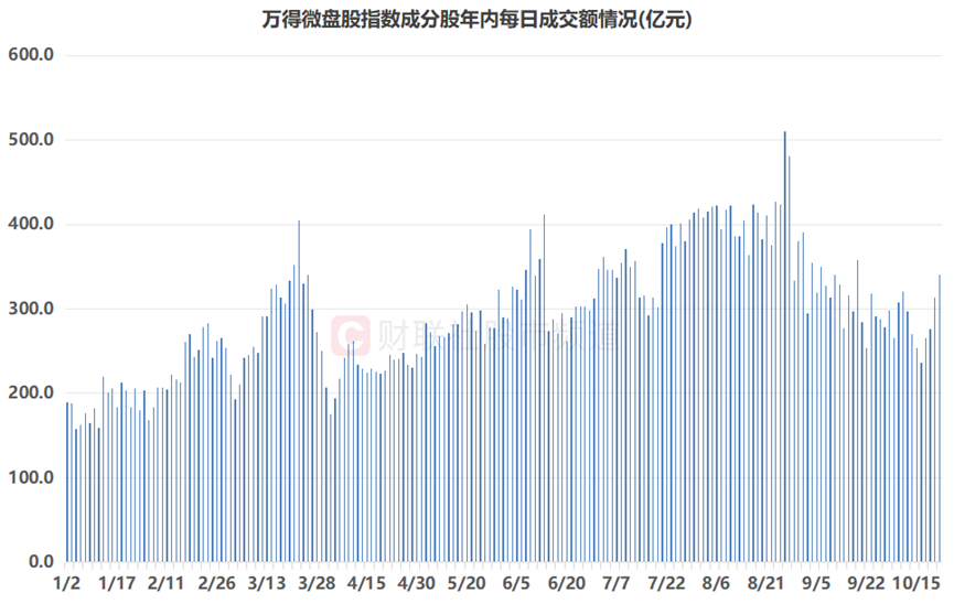 注:万得微盘股指数成分股年内每日成交额情况(截至10月22日收盘)