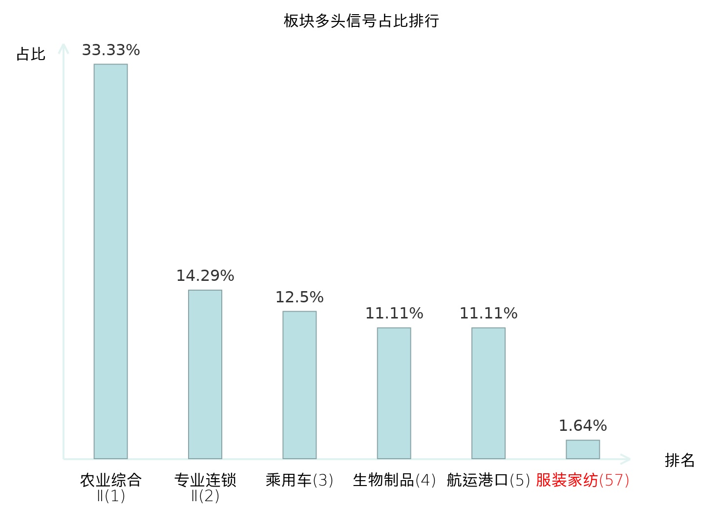 从主力宝信号数据分析,嘉曼服饰所属的服装家纺板块中共有1只股票发出主力多头信号,主力多头信号占比在全行业中排名第57位,较昨日下降32位。排名较高表明主力当日买入意愿较强,此次排名下降可能反映了主力对该板块态度的调整。全市场所有行业板块中主力多头信号占比排名中,农业综合Ⅱ板块位居第一;专业连锁Ⅱ板块名次提升最快,较昨日上升122位。这些变动揭示了不同行业间主力资金偏好的变化,有助于投资者理解当前市场的动态和趋势。