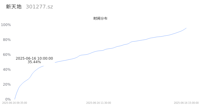 301277新天地2025年06月16日成交13.85万手,成交金额2.13亿,相较昨日缩量8.19万手,换手率13.71%,成交活跃。