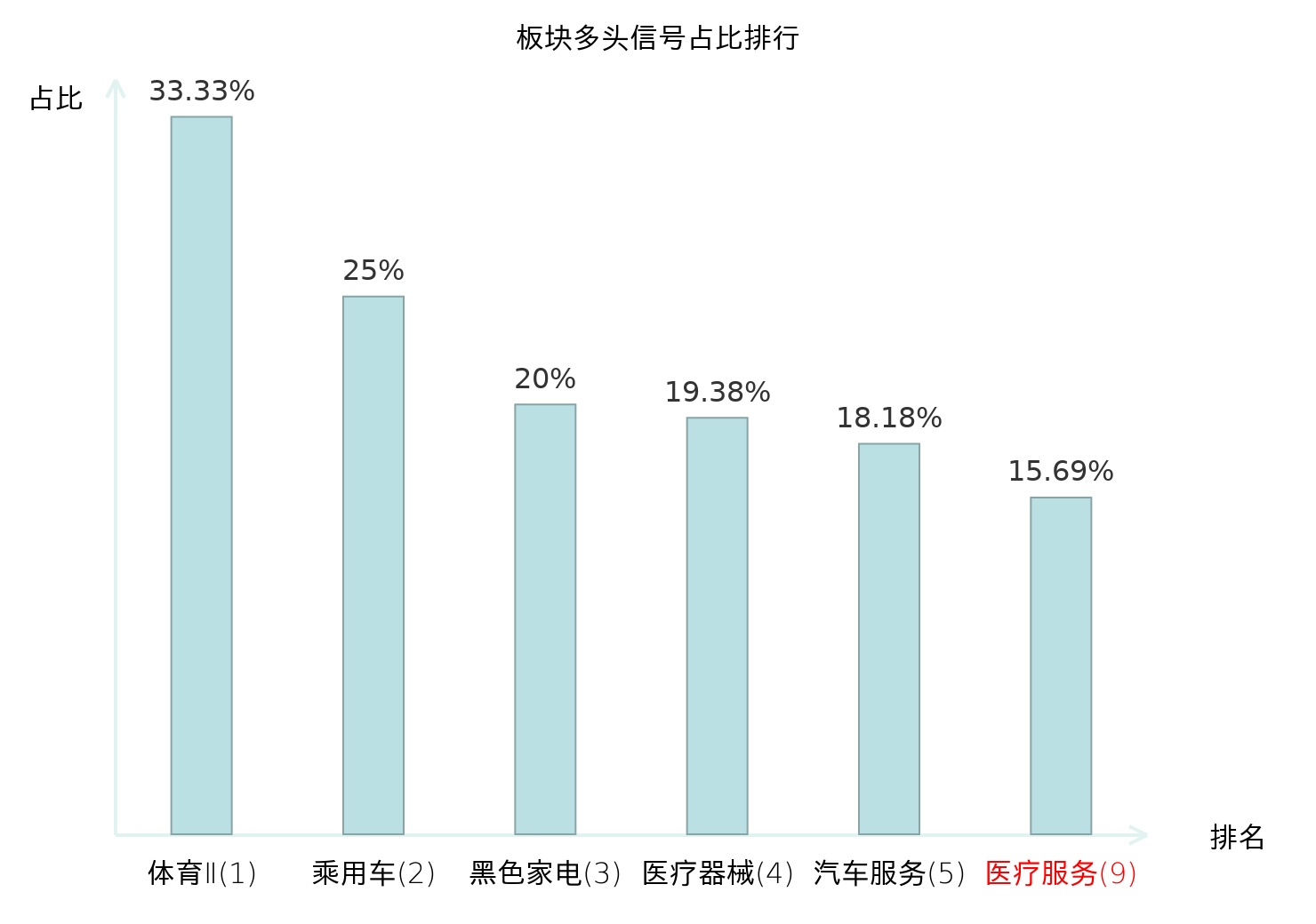 全市场所有行业板块中主力多头信号占比排名中,体育Ⅱ板块位居第一。体育Ⅱ板块名次提升最快,较昨日上升130位。