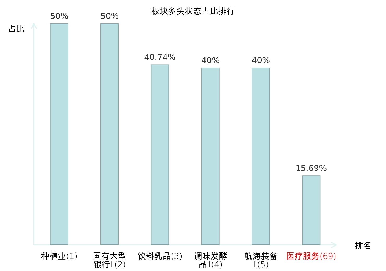 全市场所有行业板块中主力多头状态占比排名中,种植业板块位居第一。冶钢原料板块名次提升最快,较昨日上升89位。