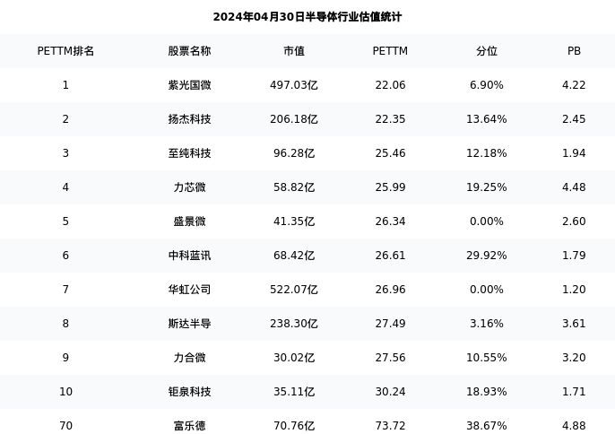 从估值角度看:富乐德最新市盈率PETTM为73.72,在行业内排名70/153,处于38.67分位。
