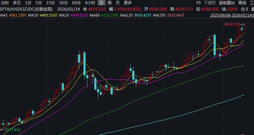 其中,伦敦白银现货价格史上首次站上90美元/盎司大关,高点达到91.551美元/盎司,年内涨幅超过26%;伦敦黄金现货价格也达到4639.723美元/盎司的历史高位,年内涨幅突破7%。
