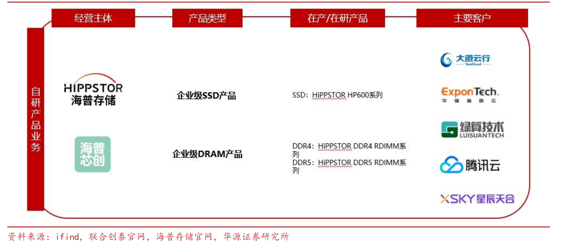 B)产品:自研产品打开第二增长曲线。公司联合SK海力士、大普微电子等合作方先后成立控股子公司海普存储和海普芯创,分别负责企业级SSD和DRAM产品的设计、生产和销售。目前公司自主品牌建设、开发进展顺利,以深度服务国家大数据产业为出发点,围绕国产化、定制化路线,截止2024年中已完成企业级DDR4、DDR5、Gen4eSSD的研发试产,产品性能优异。根据公司股权激励计划目标,我们预计企业级产品未来将处于高速增长通道。