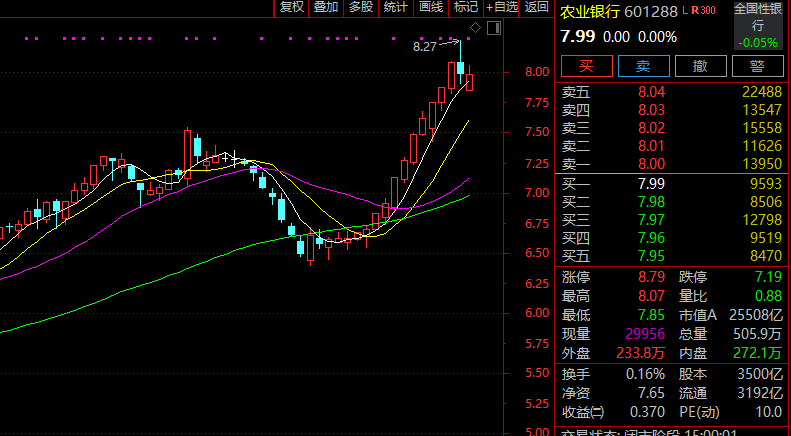 本周市场热点轮动较快,前半周,以银行为首的高股息股受到市场追捧,特别是农业银行,日K线一度连续14日收阳,股价连创历史新高,截至周五收盘,农业银行为银行板块唯一一只股价在净资产以上的个股,也是唯一一只动态市盈率超过10倍的银行股。