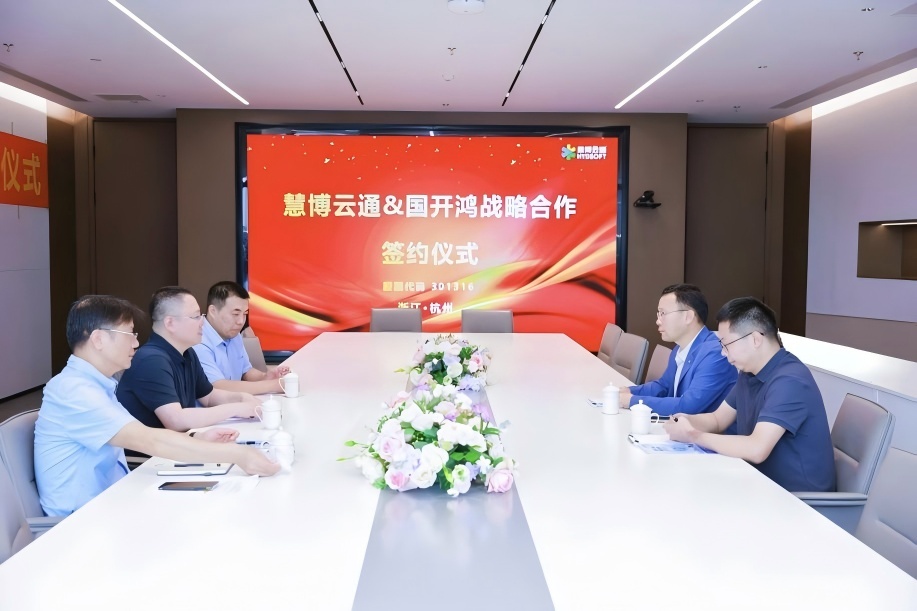 中证报中证网讯9月24日,慧博云通与国开鸿(深圳)科技有限公司在杭州举行战略合作签约仪式。国开鸿总经理程胜春、副总经理付庆,慧博云通董事长余浩、执行副总裁林建军、副总裁张海宏等出席。