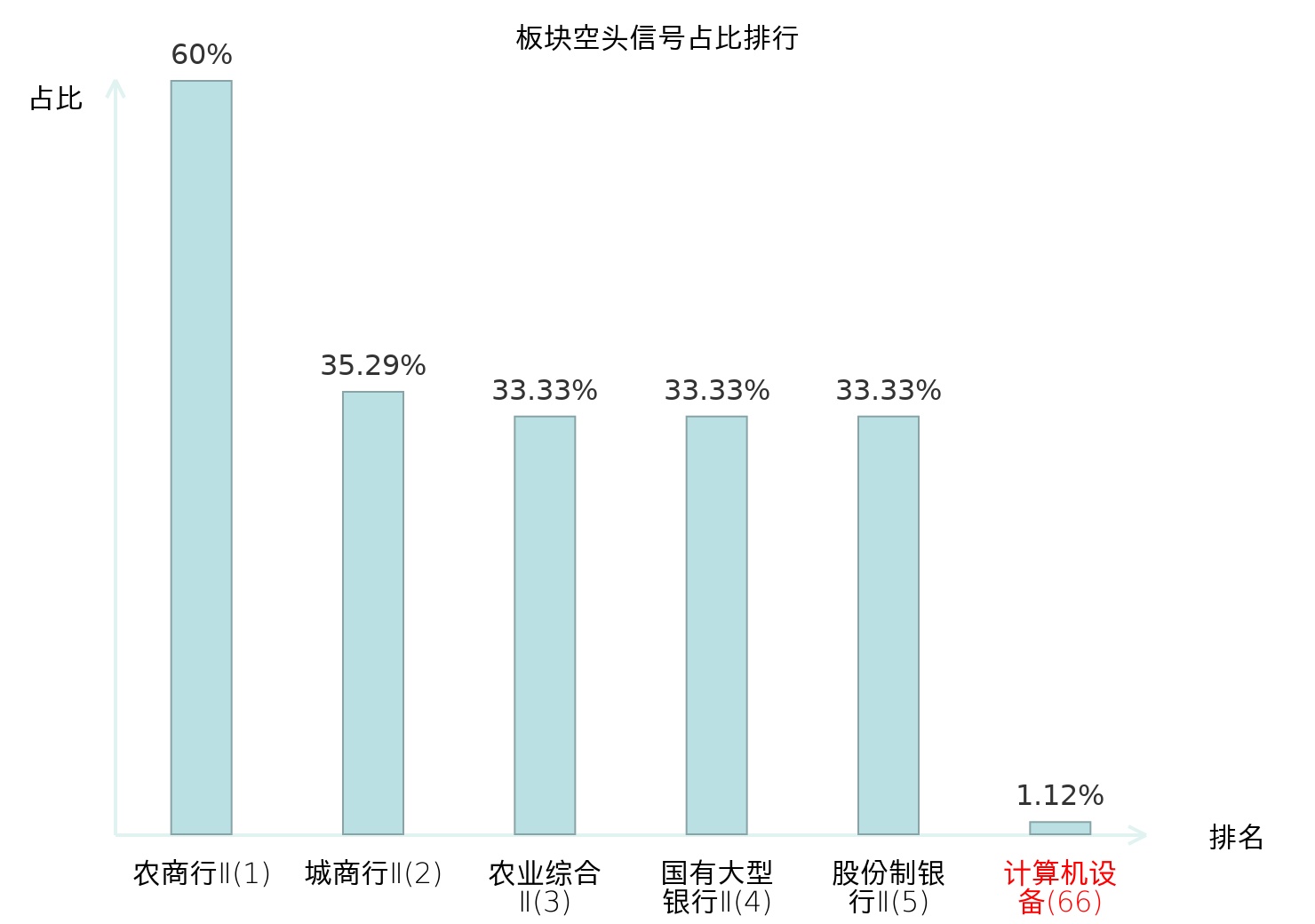 全市场所有行业板块中主力空头信号占比排名中,农商行Ⅱ板块位居第一。铁路公路板块名次提升最快,较昨日上升106位。