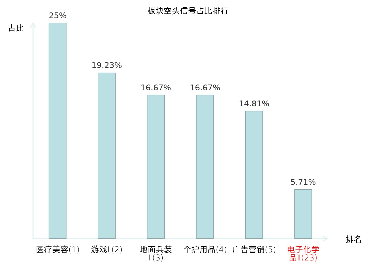 全市场所有行业板块中主力空头信号占比排名中,医疗美容板块位居第一。游戏Ⅱ板块名次提升最快,较昨日上升122位。