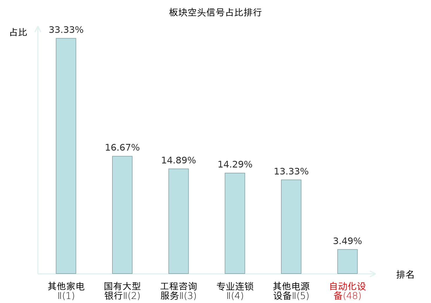 全市场所有行业板块中主力空头信号占比排名中,其他家电Ⅱ板块位居第一。光学光电子板块名次提升最快,较昨日上升117位。