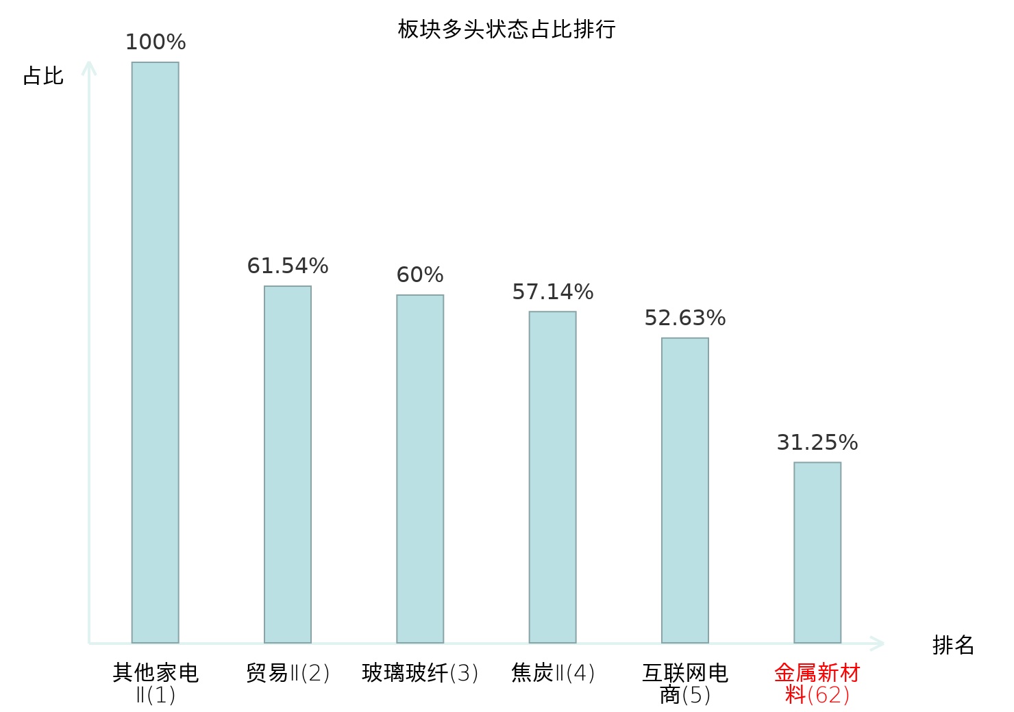 全市场所有行业板块中主力多头状态占比排名中,其他家电Ⅱ板块位居第一。教育板块名次提升最快,较昨日上升50位。