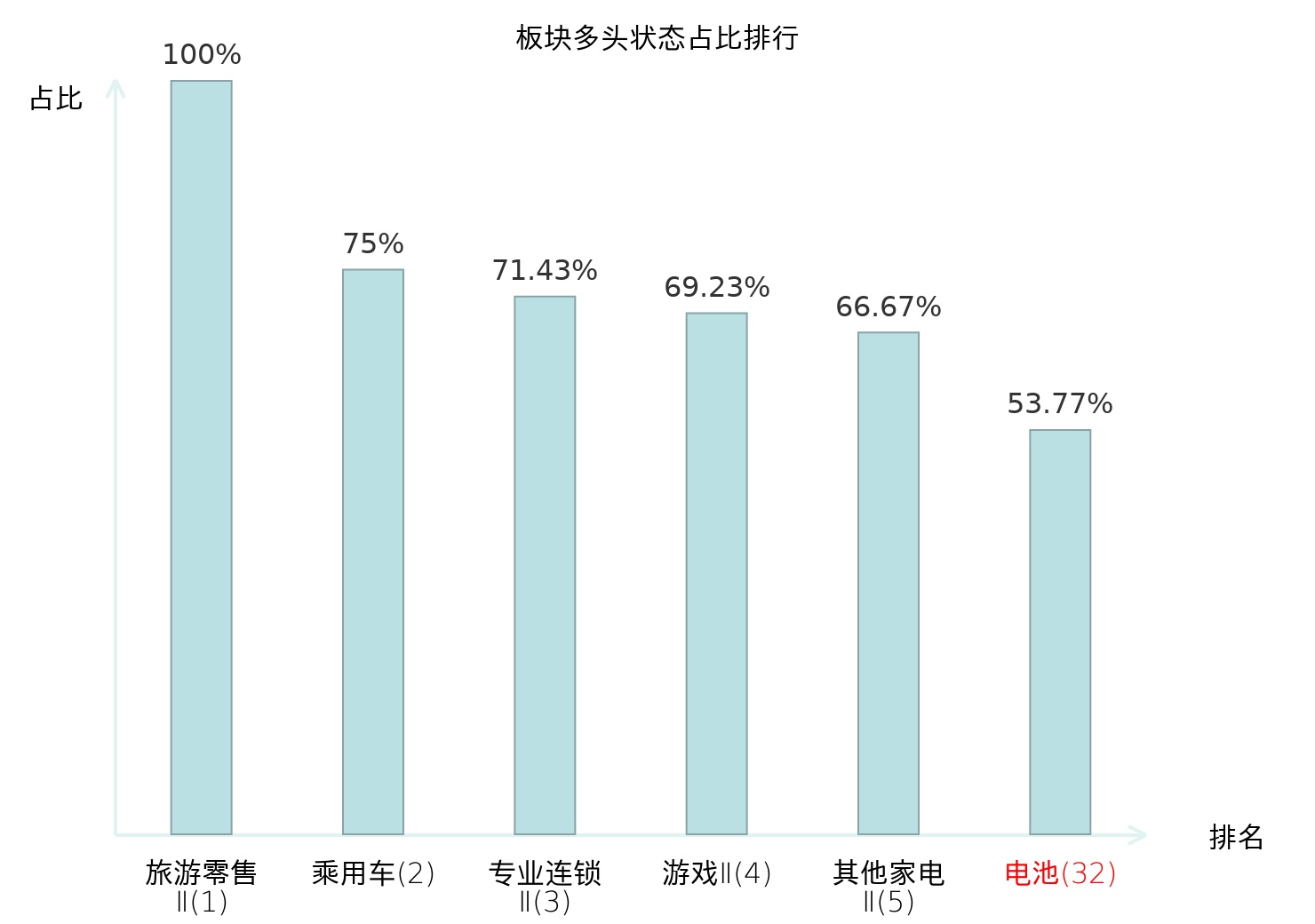从主力宝信号数据分析,曼恩斯特所属的电池板块中共有57只股票处于主力多头状态,主力多头状态占比在全行业中排名第32位,较昨日上升8位。排名的上升表明主力对于该板块整体的看多意愿有所增强。全市场所有行业板块中,旅游零售Ⅱ板块的主力多头状态占比最高,位居第一。保险Ⅱ板块名次提升最快,较昨日上升82位。这些变动揭示了不同行业间主力资金偏好的变化,为投资者提供了重要的市场参考。