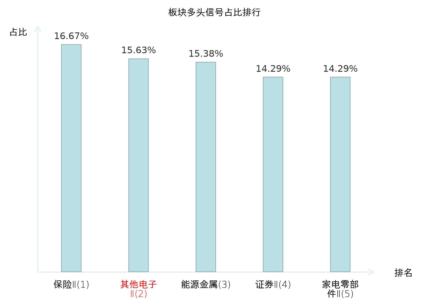全市场所有行业板块中主力多头信号占比排名中,保险Ⅱ板块位居第一。城商行Ⅱ板块名次提升最快,较昨日上升97位。