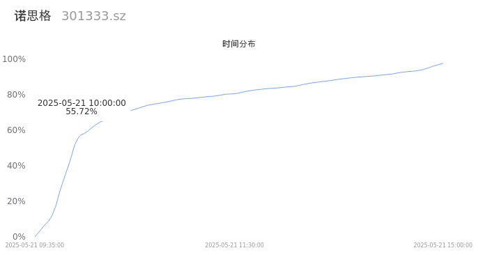 根据成交分布分析,该股票当天放量成交,成交活跃。时间上看,早盘前半小时成交量占据当天总成交量的55.72%;价格上看,成交呈现中间峰。成交分布分析主要研究股票成交的分布特性,不具有预测功能,请知悉。