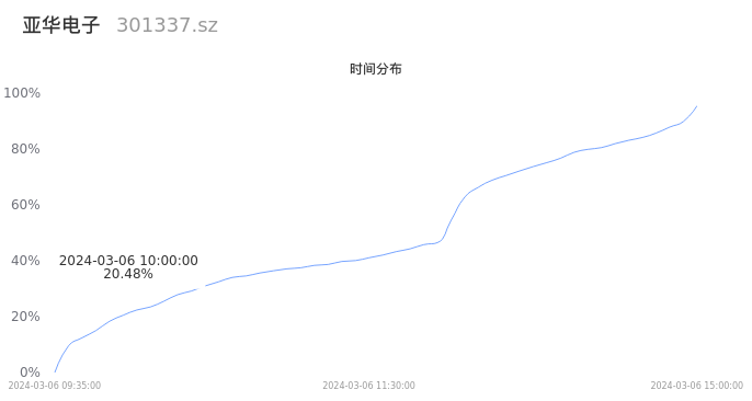 301337亚华电子2024年03月06日成交7.67万手,成交金额3.13亿元,相较昨日放量2137手,换手率29.46%,成交活跃。