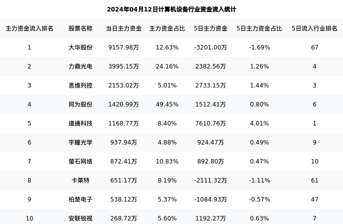 从主力资金流向来看,计算机设备行业今日主力资金流入43.91亿元,在所有申万二级行业中排名:44/131。