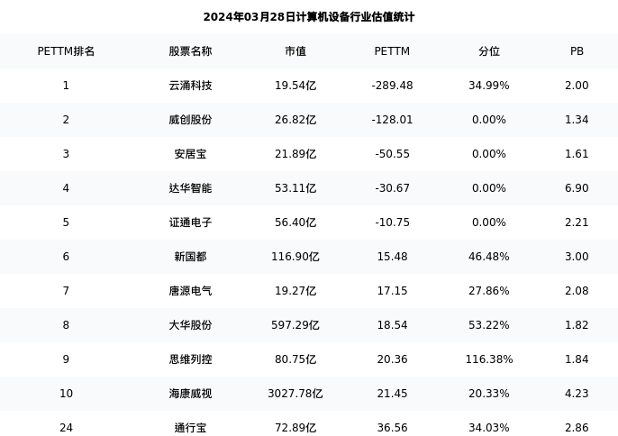 从估值角度看:通行宝最新市盈率PETTM为36.56,在行业内排名20/81,处于34.03分位。