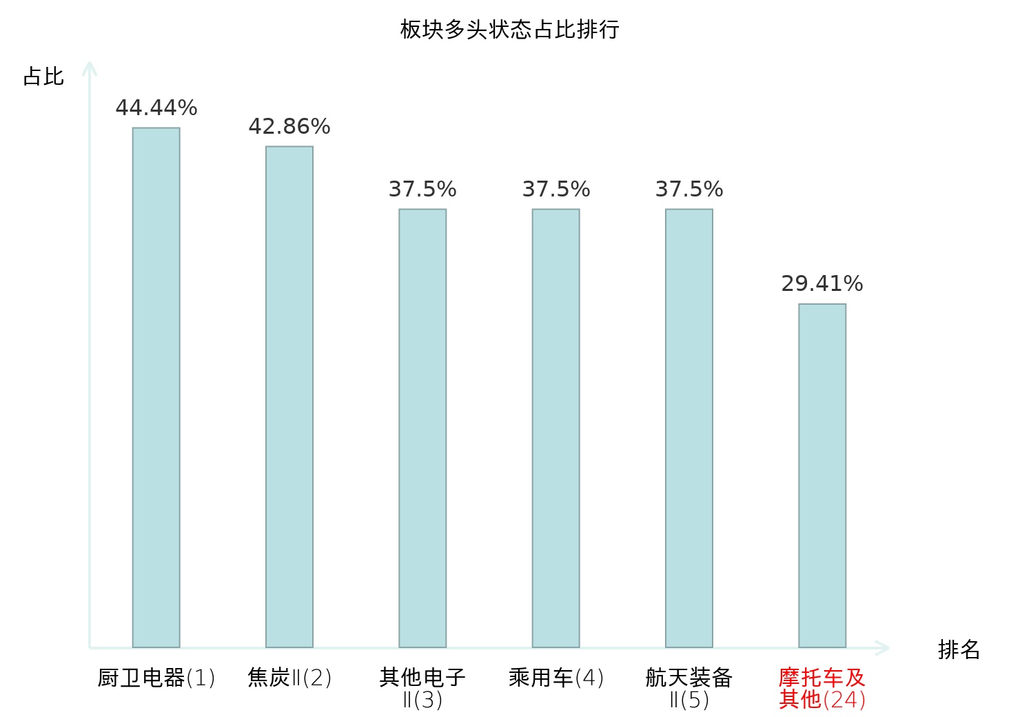 从主力宝信号数据分析,涛涛车业所属的摩托车及其他板块中共有5只股票处于主力多头状态,主力多头状态占比在全行业中排名第24位,较昨日上升了31位。较高的排名表明主力对于该板块整体看多意愿较强,此次排名上升反映了主力对该板块态度的积极变化。全市场所有行业板块中主力多头状态占比排名中,厨卫电器板块位居第一;元件板块名次提升最快,较昨日上升了69位。这些变动揭示了不同行业间主力资金动向的趋势,为投资者提供了关于市场情绪和潜在投资机会的重要线索。