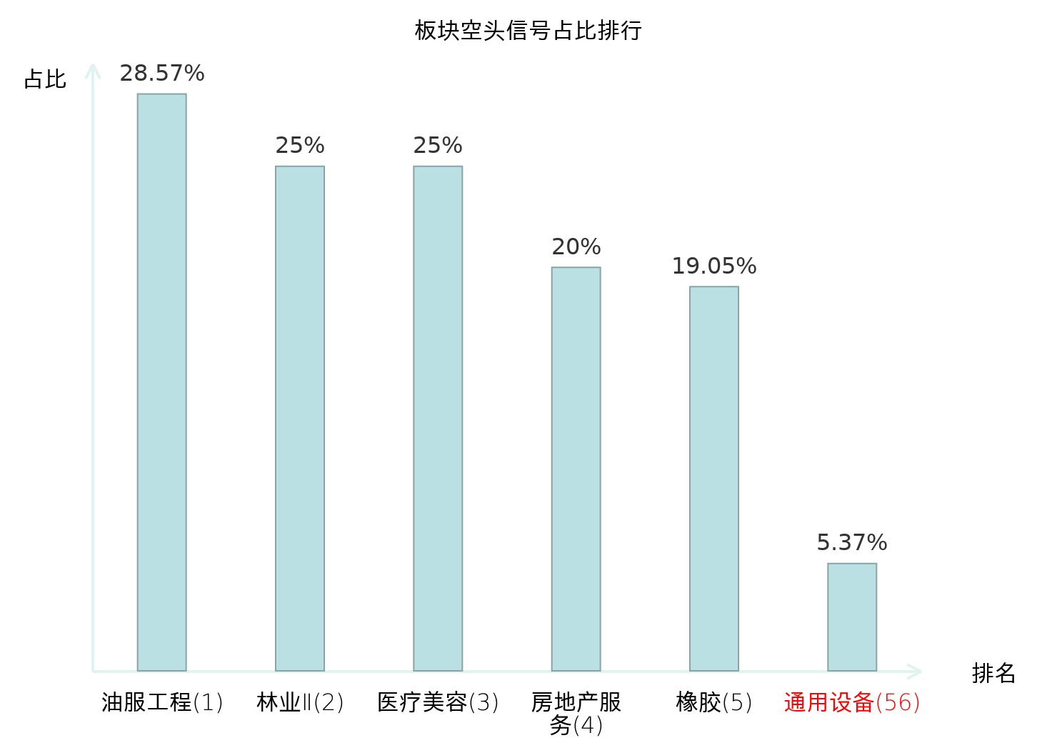 全市场所有行业板块中主力空头信号占比排名中,油服工程板块位居第一。炼化及贸易板块名次提升最快,较昨日上升102位。