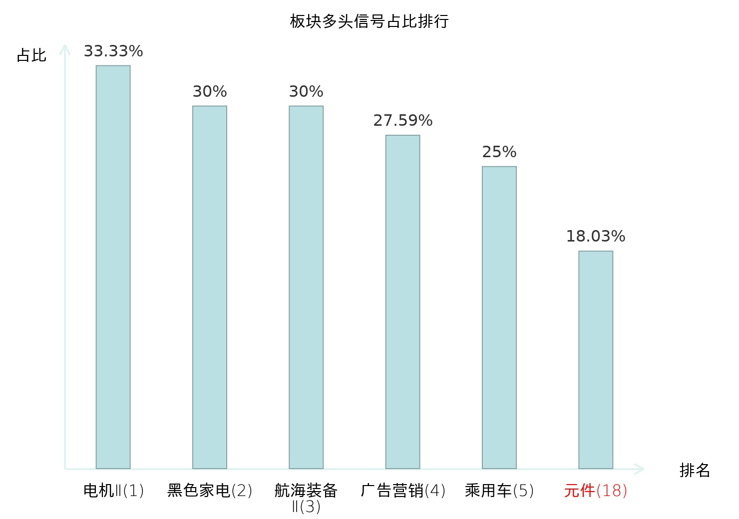 从主力宝信号数据分析,一博科技所属的元件板块中共11只股票发出主力多头信号,主力多头信号占比在全行业中排名第18位,较昨日上升45位。排名的显著提升表明主力对于该板块的买入意愿增强,对投资者来说,这可能是关注该板块的潜在机会的信号。全市场所有行业板块中主力多头信号占比排名中,电机Ⅱ板块位居第一。乘用车板块名次提升最快,较昨日上升114位。这些变动反映了主力资金在不同行业间的偏好调整,为投资者提供了重要的市场动态信息。
