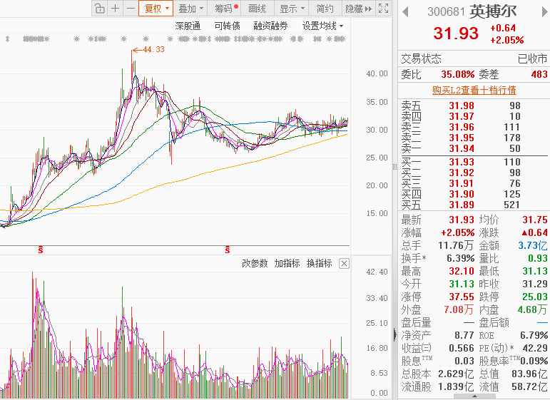 英搏尔是新能源车和飞行汽车概念股,近1年随新能源车加速渗透和低空经济的催化,业绩同步大增,股价顺势上升(优于大市),上半年一路冲高后,经过几个月价值回归,当下又企稳重拾升势!当下流通市值50多亿左右且十大流通股东中有众多公私募机构的身影,筹码愈发集中易炒作;近期在“科技牛”行情催化下,温和放量震荡上行,各周期均线有支撑且呈多头排列向上,股价有望一触即发。点击此处立即解锁“启动点“!