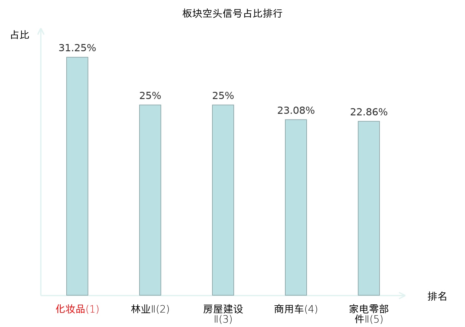从主力宝信号数据分析,敷尔佳所属的化妆品板块中共5只股票发出主力空头信号,主力空头信号占比在全行业中排名第1位,较昨日上升93位。较高的排名表明主力当日卖出意愿较强,此次排名上升可能反映了主力对该板块态度的进一步看空。全市场所有行业板块中主力空头信号占比排名中,化妆品板块位居第一;房屋建设Ⅱ板块名次提升最快,较昨日上升113位。这些变动揭示了不同行业间主力资金偏好的变化,为投资者理解当前市场的动态和趋势提供了重要参考。