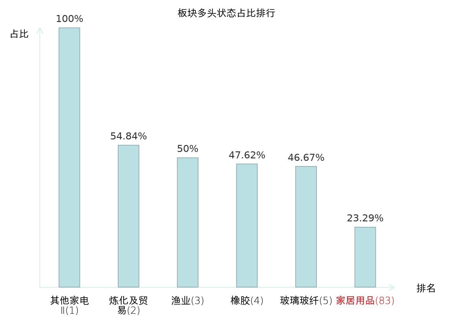 全市场所有行业板块中主力多头状态占比排名中,其他家电Ⅱ板块位居第一。铁路公路板块名次提升最快,较昨日上升37位。