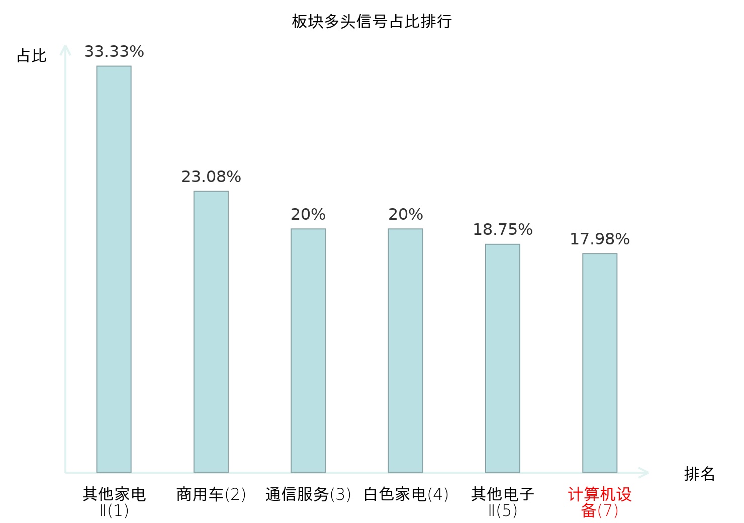 全市场所有行业板块中主力多头信号占比排名中,其他家电Ⅱ板块位居第一。其他家电Ⅱ板块名次提升最快,较昨日上升129位。
