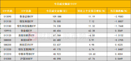 从成交额前十的ETF来看,香港证券ETF(513090)成交额位居首位,恒生科技ETF(513130)成交额位居次席。