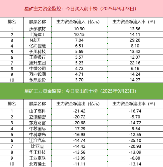 主力资金流出前十的个股所属板块较为分散,山子高科净流出居首。
