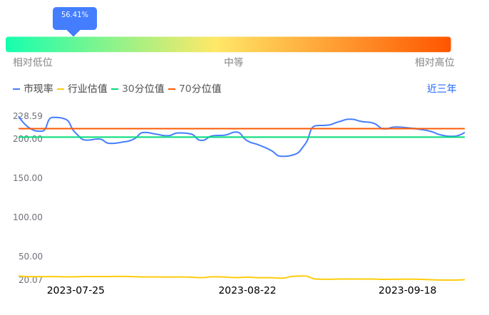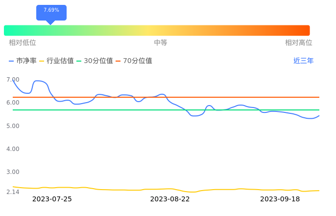 2023年09月19日,福事特下跌1.76%收于32.38,今日成交金额2286.86万元。下文将从市盈率PETTM、市净率PB、市现率3个角度去分析公司估值情况。
