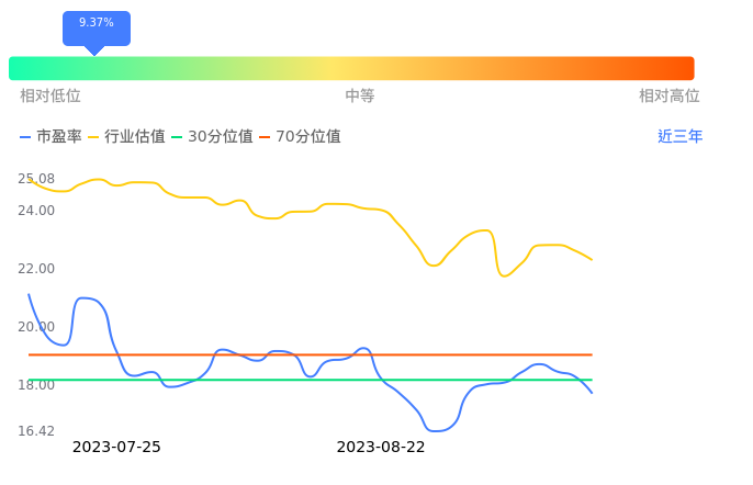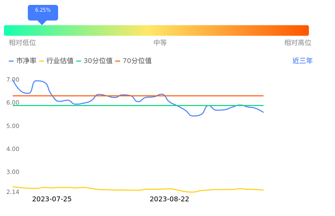 2023年09月07日,福事特下跌3.25%收于33.69,今日成交金额4148.05万元。下文将从市盈率PETTM、市净率PB、市现率3个角度去分析公司估值情况。