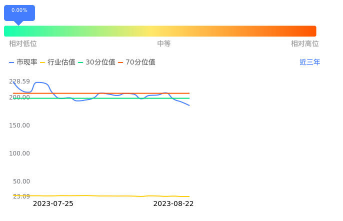 2023年08月25日,福事特下跌4.31%收于31.52,今日成交金额5829.50万元。下文将从市盈率PETTM、市净率PB、市现率3个角度去分析公司估值情况。