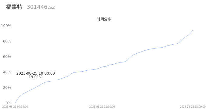 301446福事特2023年08月25日成交1.81万手,成交金额5829.50万元,相较昨日缩量9903手,换手率9.05%,成交清淡。