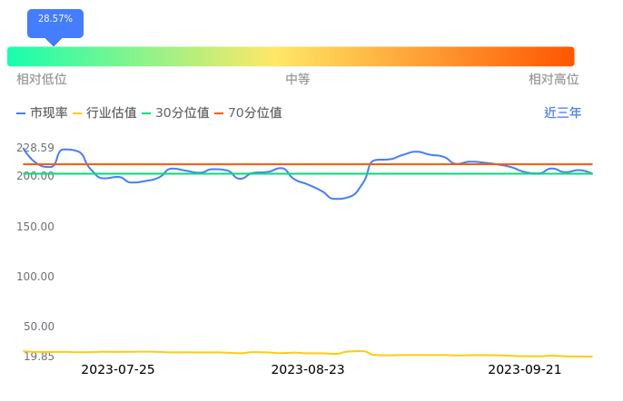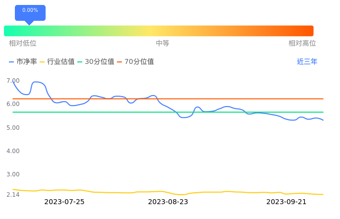 2023年09月21日,福事特下跌1.90%收于32.08,今日成交金额1893.04万元。下文将从市盈率PETTM、市净率PB、市现率3个角度去分析公司估值情况。