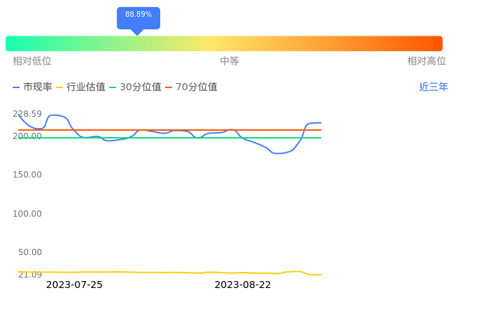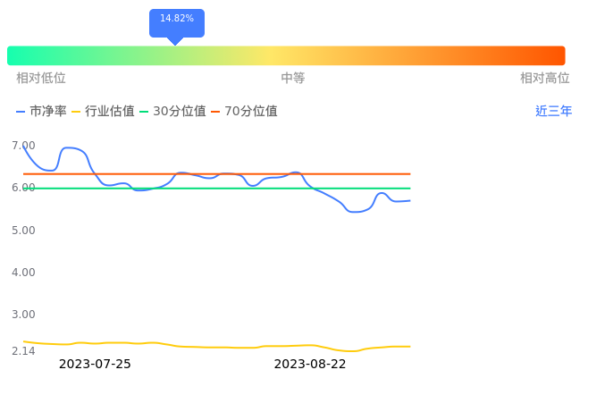 2023年08月31日,福事特上涨0.35%收于34.42,今日成交金额4554.97万元。下文将从市盈率PETTM、市净率PB、市现率3个角度去分析公司估值情况。