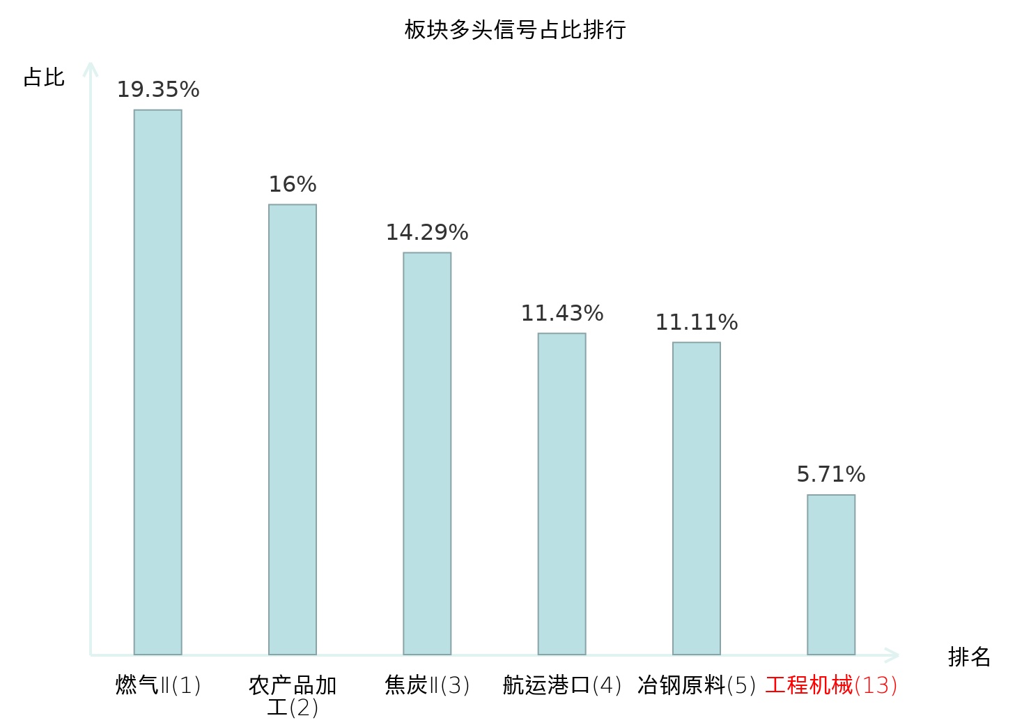 全市场所有行业板块中主力多头信号占比排名中,燃气Ⅱ板块位居第一。非白酒板块名次提升最快,较昨日上升86位。