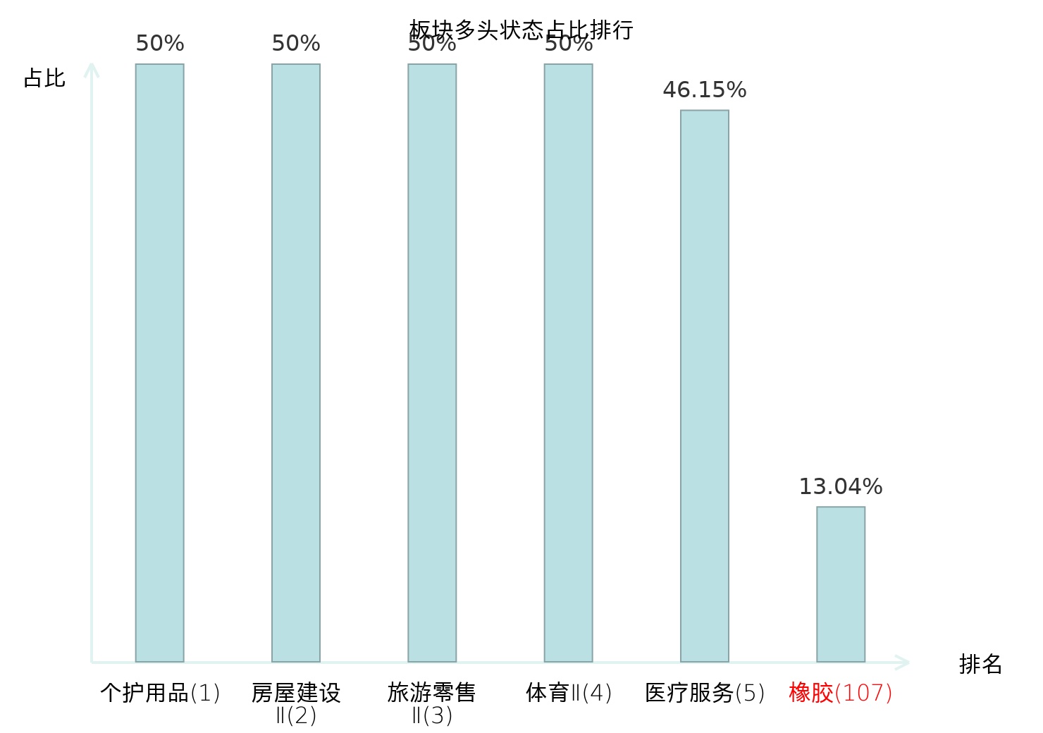 全市场所有行业板块中主力多头状态占比排名中,个护用品板块位居第一。影视院线板块名次提升最快,较昨日上升56位。