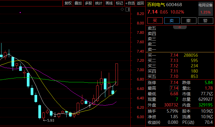 可控核聚变概念股早间大幅高开高走,板块指数盘初一度放量大涨逾3%,创历史新高。王子新材开盘一字涨停,连续第2日封板,百利电气(600468)约7分钟直线涨停,四创电子、宏微科技、常辅股份等亦强势涨停或涨超10%。