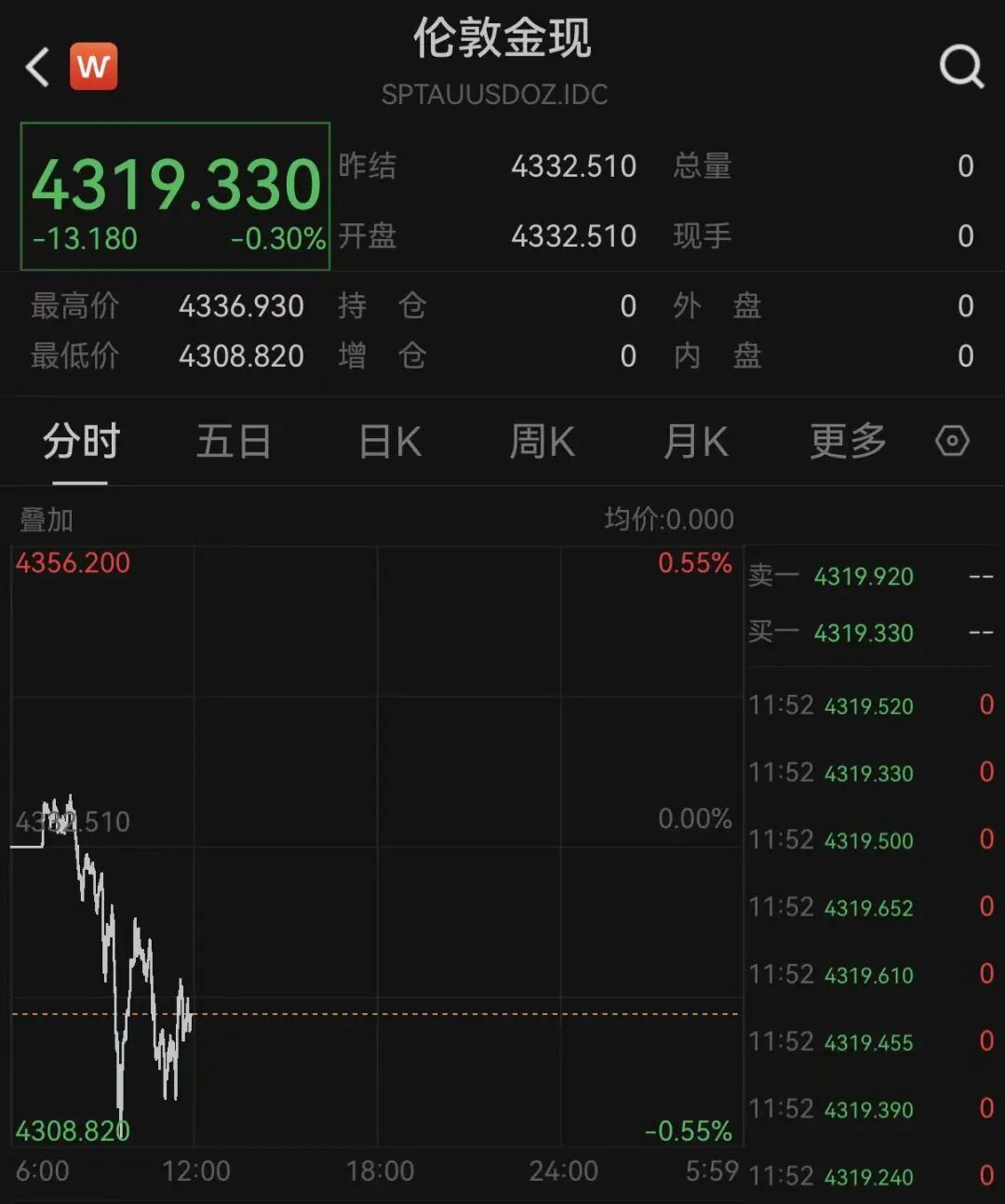 而黄金、白银则应声跳水,截至发稿,现货黄金跌至4319美元附近。