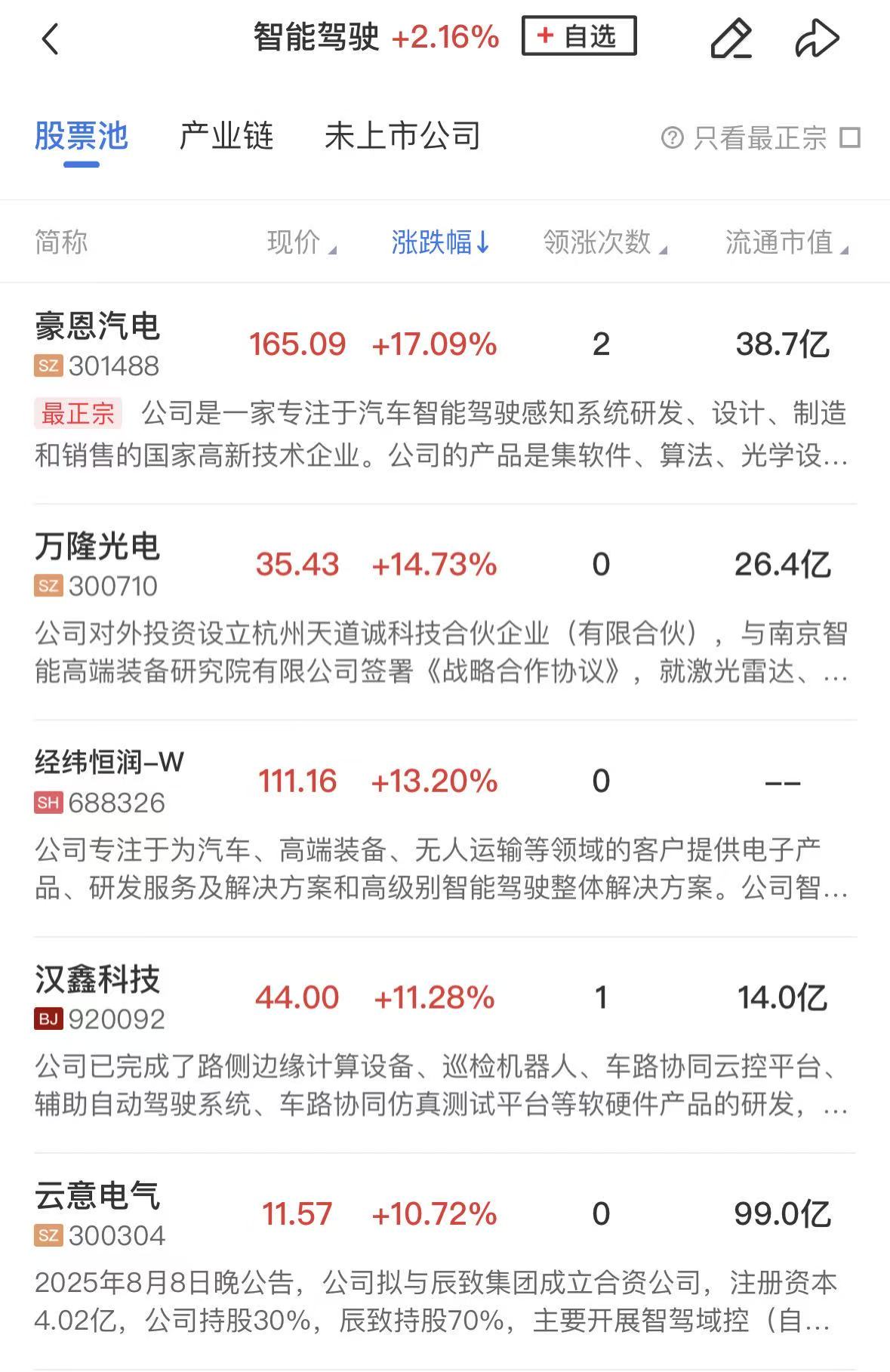 智能驾驶概念走强,浙江世宝4连板,路畅科技4天2板,威帝股份、索菱股份、山子高科等涨停,豪恩汽电、经纬恒润、汉鑫科技等涨超10%。