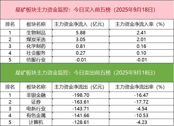板块资金流出方面,非银金融板块主力资金净流出居首。