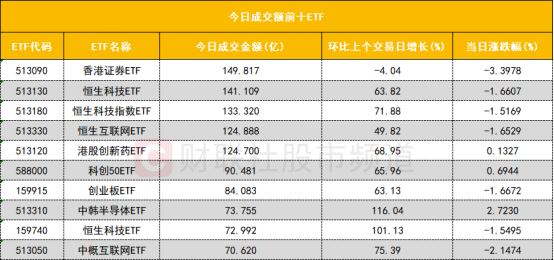 从成交额前十的ETF来看,香港证券ETF(513090)成交额位居首位,恒生科技ETF(513130)成交额位居次席。
