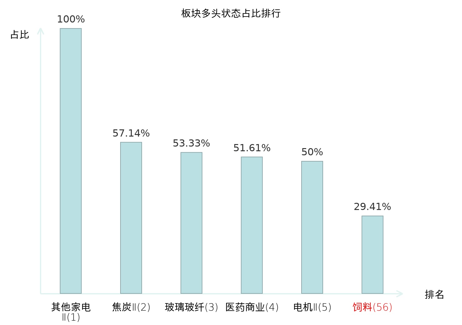 全市场所有行业板块中主力多头状态占比排名中,其他家电Ⅱ板块位居第一。白色家电板块名次提升最快,较昨日上升67位。
