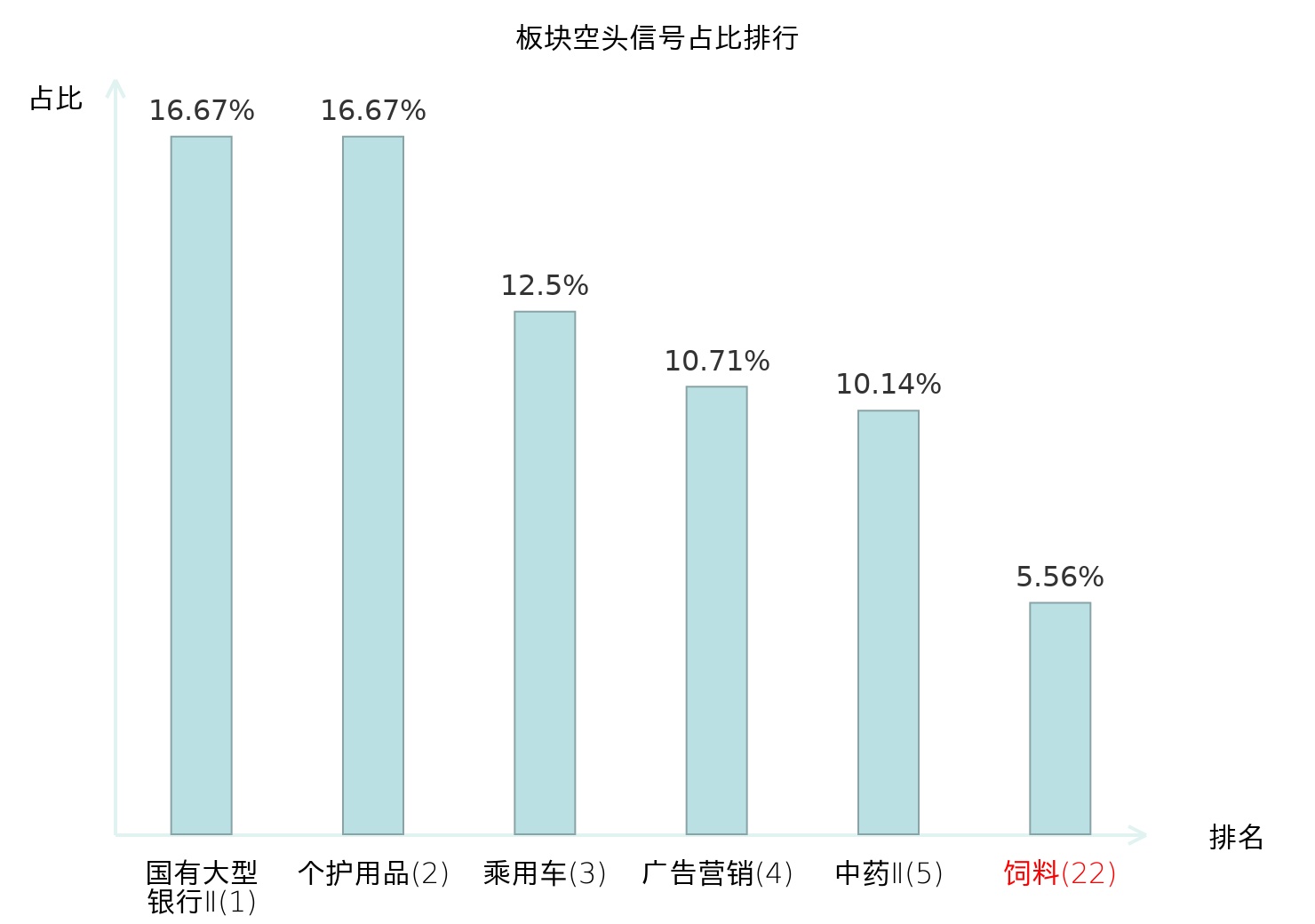 全市场所有行业板块中主力空头信号占比排名中,国有大型银行Ⅱ板块位居第一。医疗服务板块名次提升最快,较昨日上升110位。