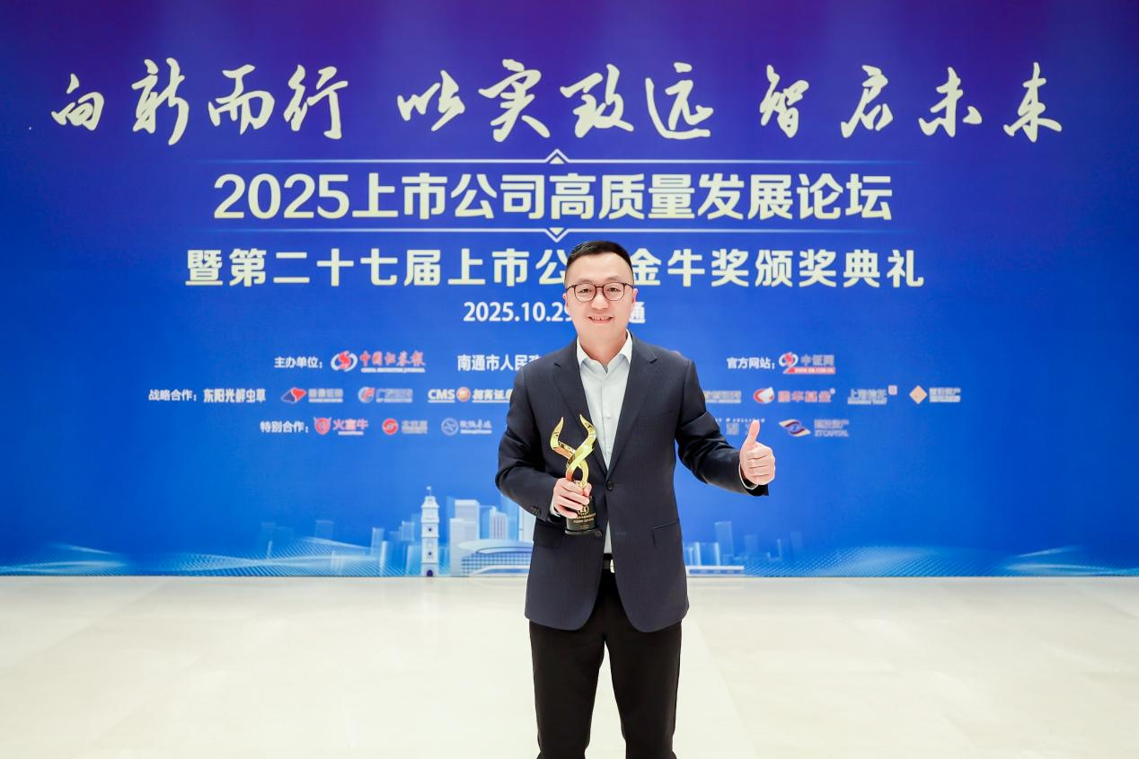中证报中证网讯10月29日,2025上市公司高质量发展论坛暨第二十七届上市公司金牛奖颁奖典礼在江苏南通举行。本届论坛以“向新而行 以实致远 智启未来”为主题,备受瞩目的上市公司金牛奖榜单揭晓,乖宝宠物荣获“2024年度最具投资价值奖”,公司董秘王鹏荣获“2024年度金牛董秘奖”